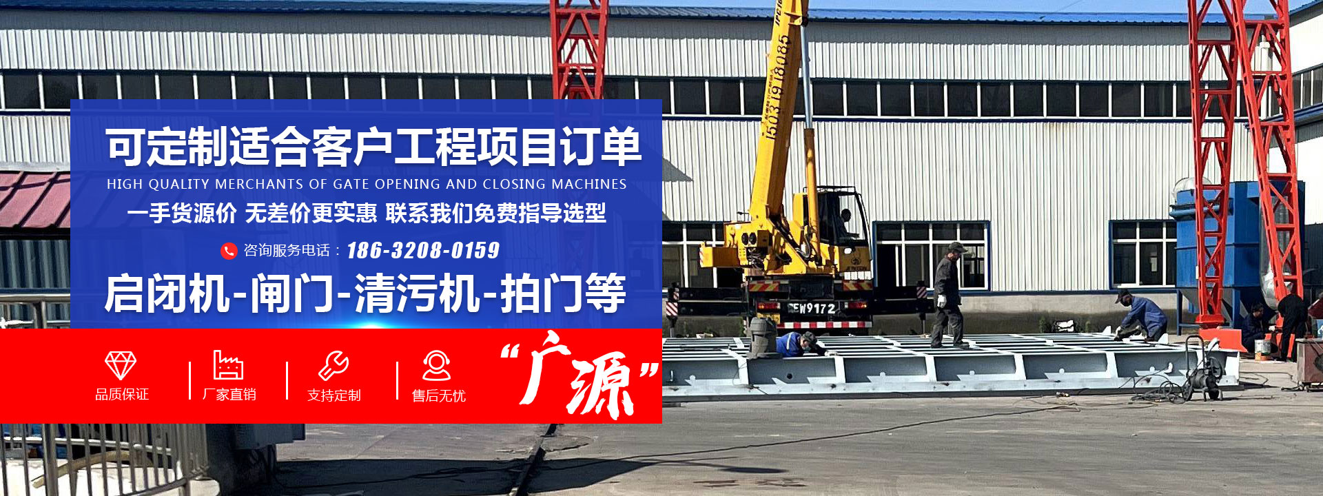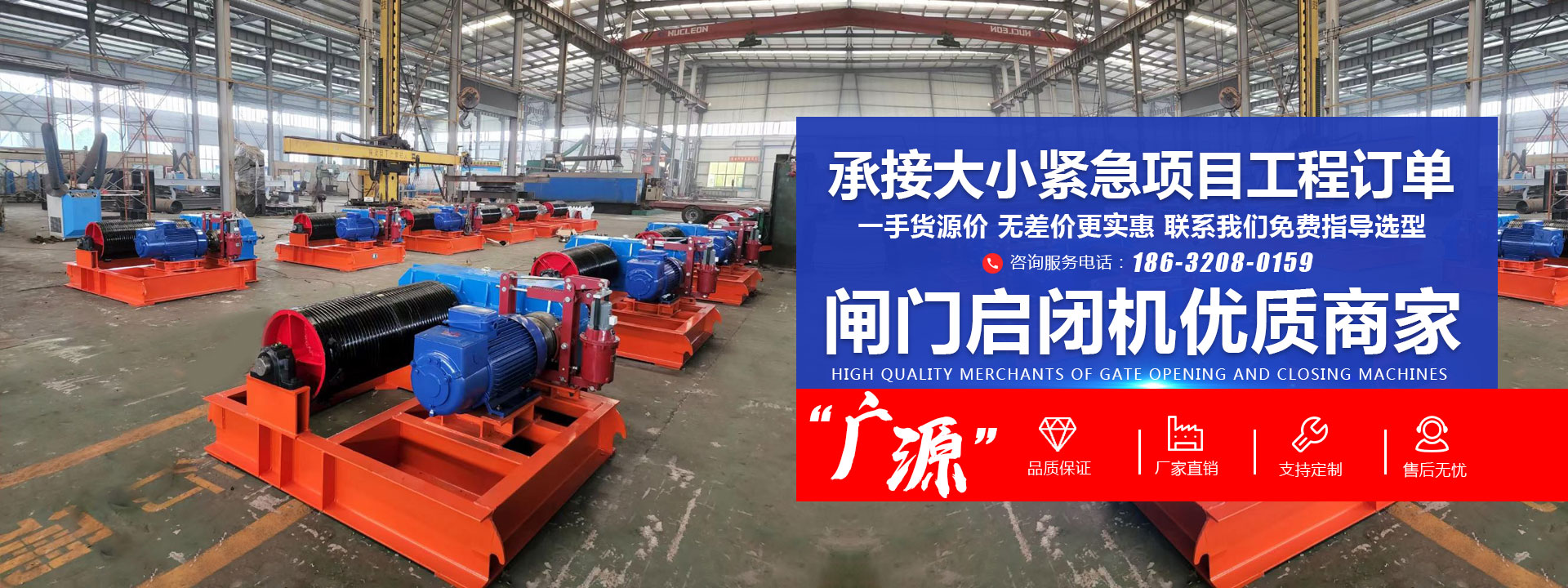新河縣廣源水利機械有限公司是從事水工機械啟閉機、閘門、螺桿式啟閉機、固定卷揚式啟閉機、移動卷揚式啟閉機、鑄鐵閘門、鋼制閘門、不銹鋼閘門、拍門、回轉清污機、格柵清污機及粉碎清污機,攔污柵、橡膠止水的專業制造、生產及指導安裝的綜合性廠家,是制造、銷售、安裝一體化的規模型水利工程機械生產企業?! ?我廠主導產品:   1、螺桿式啟閉機0.3-100T;手推帶鎖式螺桿啟閉機;手輪啟閉機;QLP平推螺桿式啟閉機0.5-2T;QLF三防型全封閉磁力鎖螺桿式啟閉機0.3T-30T;QLC側搖螺桿式啟閉機0···